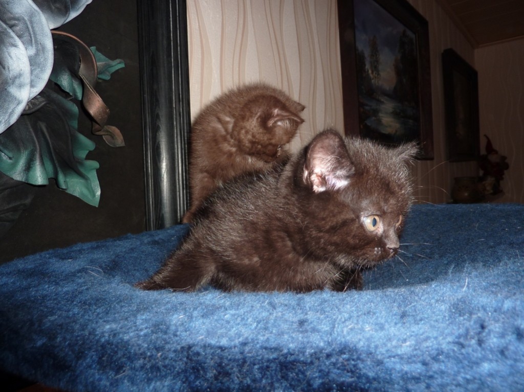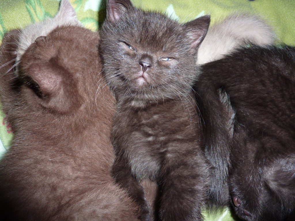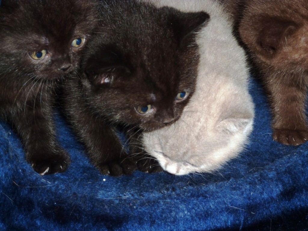 Am 28.9.2011 sind unsere 5 Britisch Kurzhaar Kitten geboren. 3 Weibchen und 2 Männchen, in verschidene Farben: Schwarz, Chocolate, Lilac und Chocolate tabby getupft. Die Kitten werden in den 12 Wochen, 3 mal entwurmt und 2 mal geimpft. Bei dem Umzug, ab den 20.12.2011 bekommen die Kitten einen Stammbaum, Gesundheitszeugnis und ein Startpacket mit. Die Kleinen, wachsen mit einem Hund und andere Katzen. Die Babys kann man ab der 4. Woche besuchen. Wir sind im einem RKS-Stuttgart Verein angemeldet. Wenn sie Interesse haben, rufen sie uns an oder schreiben die eine E-Mail. BITTE NUR IN ERNSTEN ABSICHTEN!!!!!!!